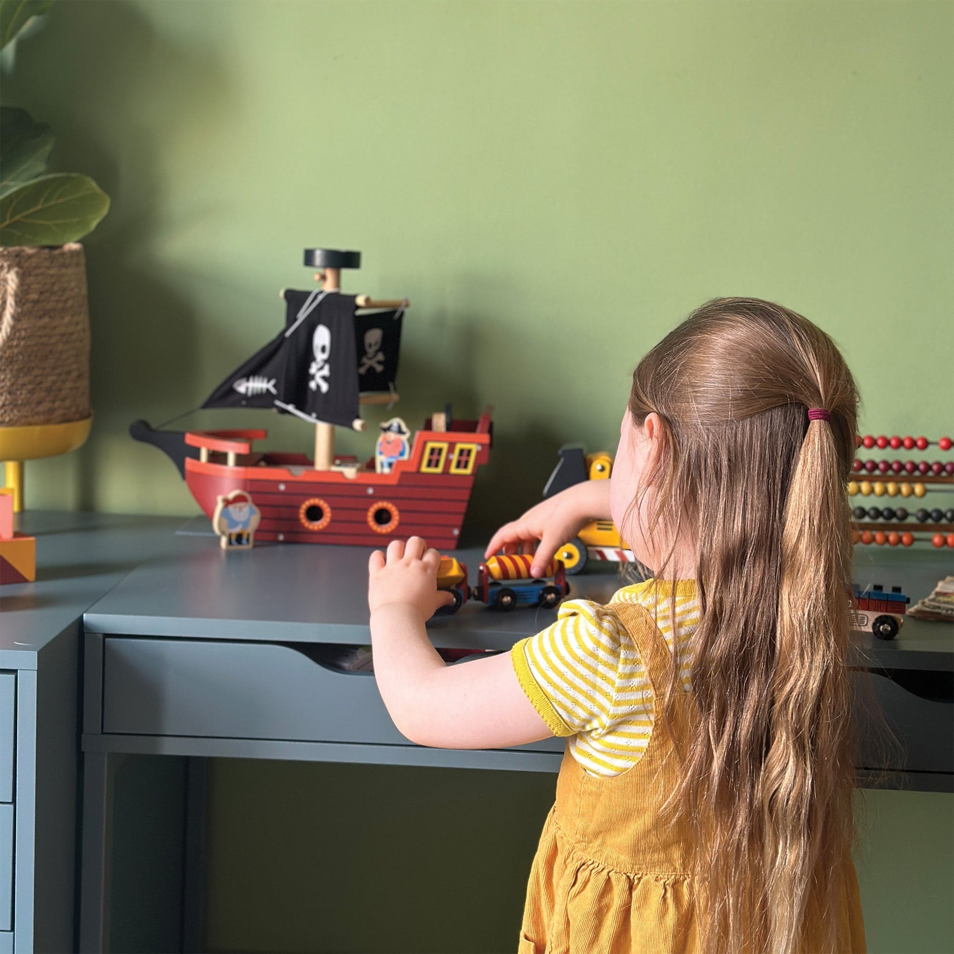 Hoist the sails and set course for adventure aboard the Fishbones Pirate Ship, complete with billowing fabric sails, a lookout crow's nest, and a spinning ship's wheel. Peek through authentic portholes, command three wooden sailors, and fire the cannon as you navigate uncharted waters of imagination. Perfect for young buccaneers ready to chart their own legendary tales on the high seas.