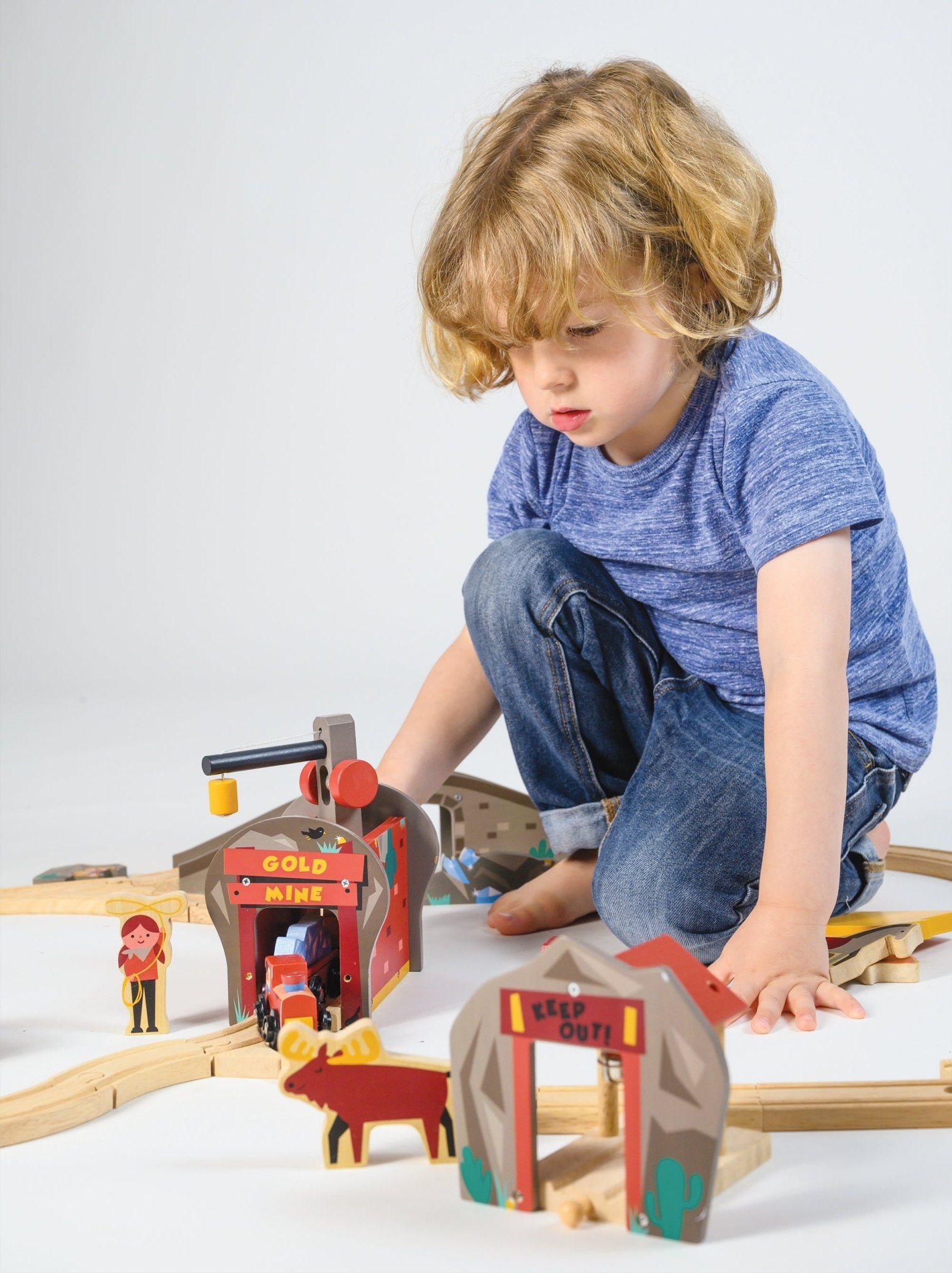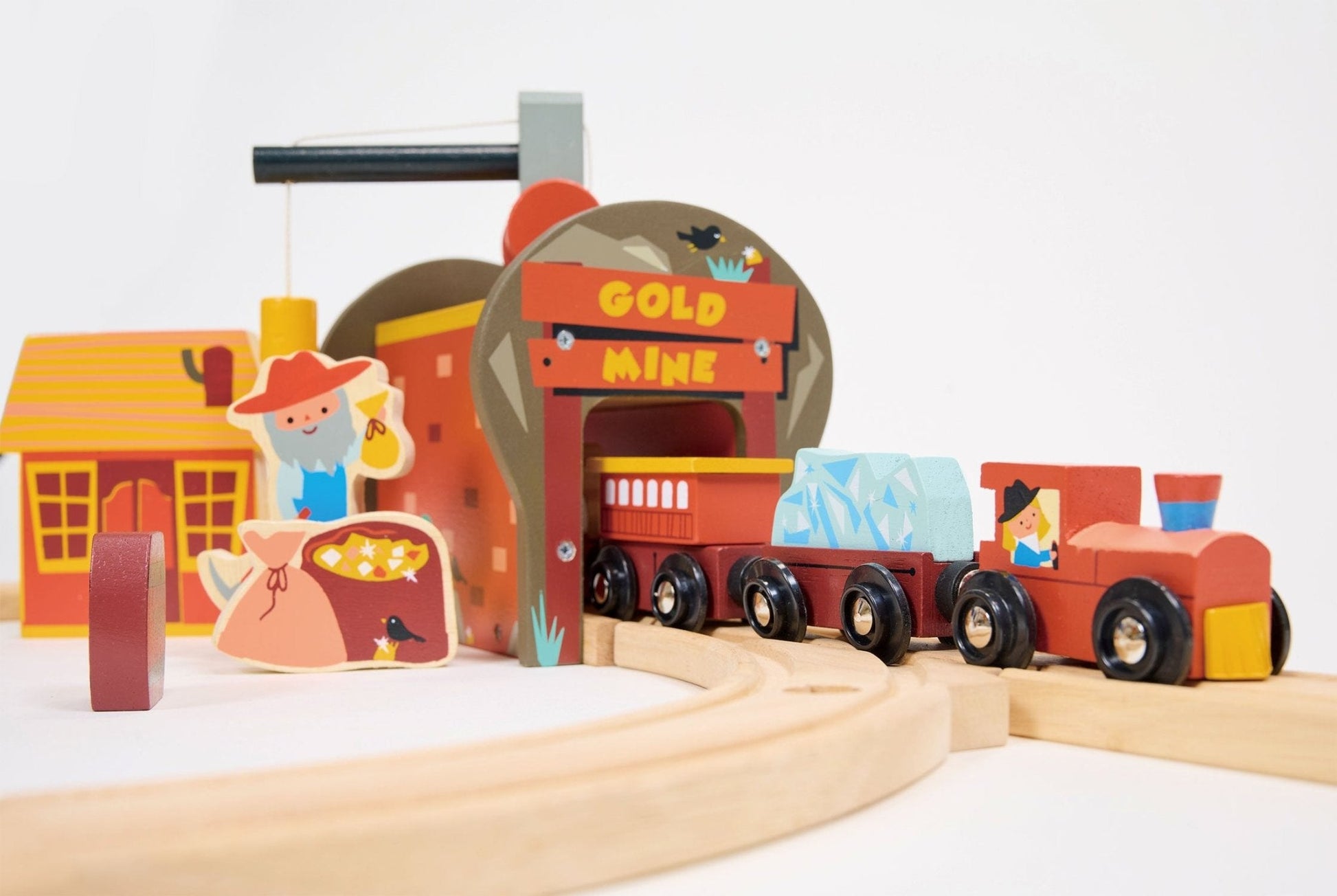 Chug along into endless adventures with the Gold Mine Train Set—a wooden companion for curious minds and creative spirits. This thoughtfully crafted set transforms your child's play space into a bustling mining operation, where tracks wind through imagination and each car carries a new chapter of discovery. Perfect for building, exploring, and spinning tall tales, it's designed to grow with your child's storytelling and construction skills. Watch as open-ended play unfolds naturally, one rail at a time.